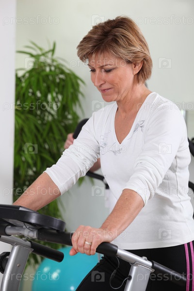 Пожилая женщина занимается фитнесом