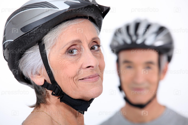 Пожилая пара в велосипедных шлемах