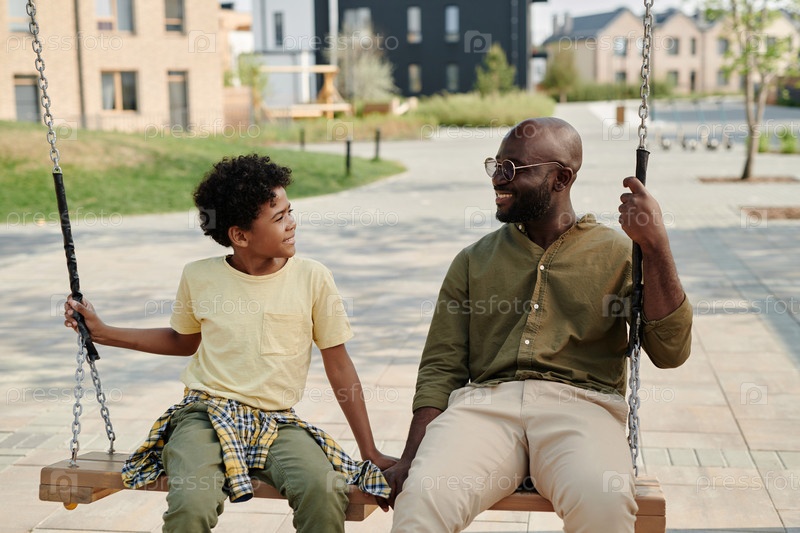Папа качается на качелях вместе со своим сыном