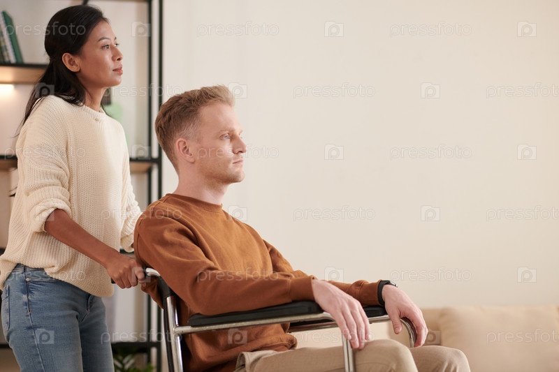 Опекун толкает пациента на инвалидной коляске