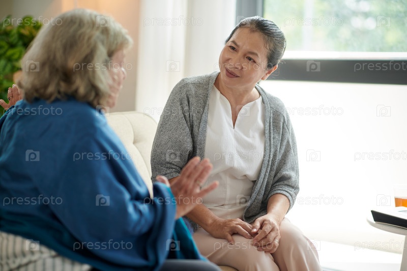 Старшая женщина разговаривает с лучшей подругой