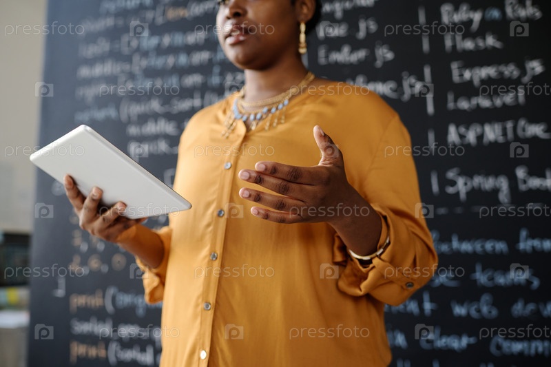 Учитель использует планшетный компьютер на уроке
