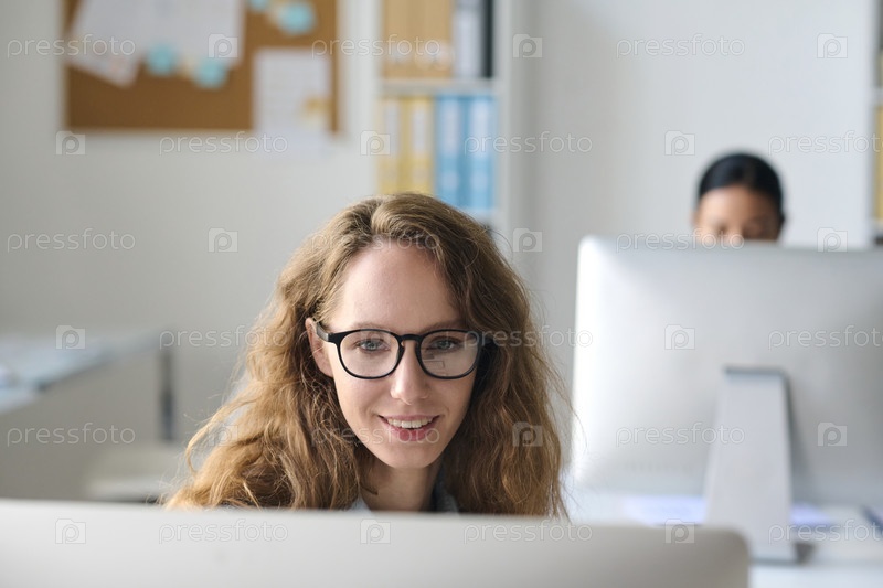 Деловая женщина, использующая компьютер на работе