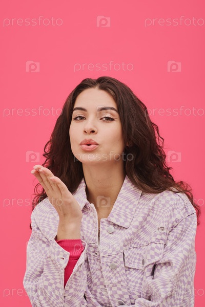 Молодая девушка дует поцелуй