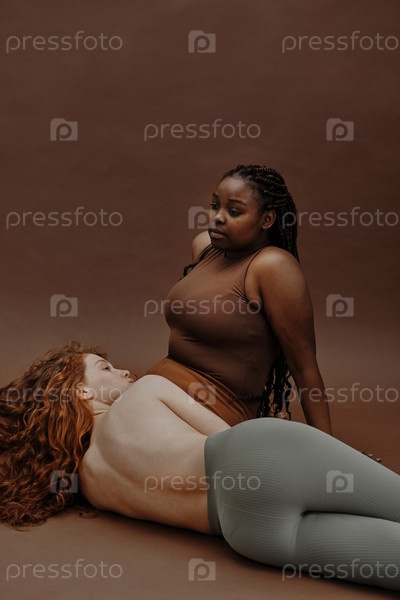 Два разнообразных друга портрет на коричневом фоне