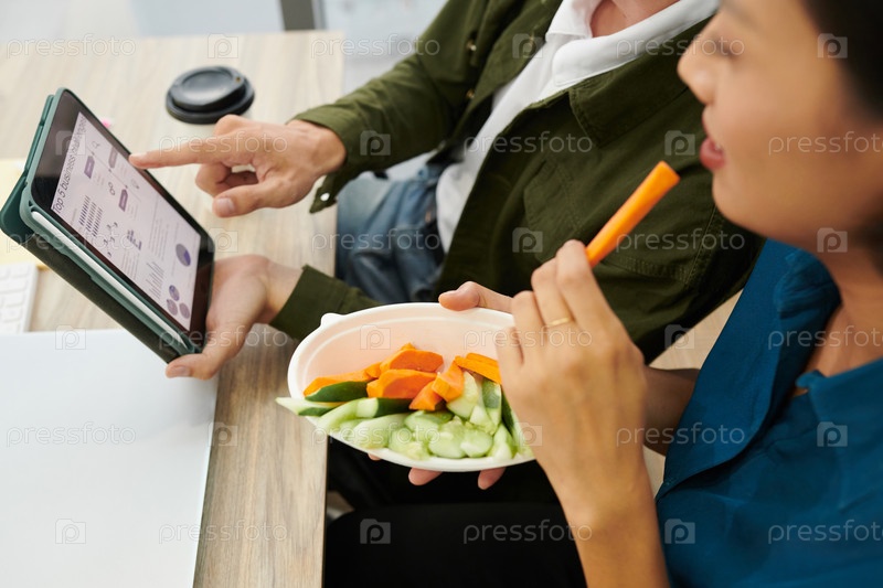 Коллеги читают статью о развитии бизнеса