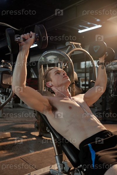 Спортсмен, делающий наклонную скамейку