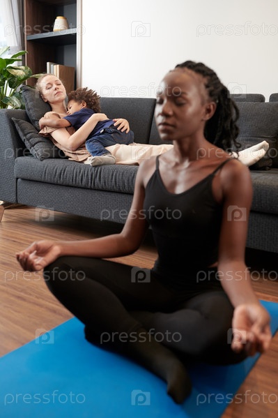 Мать и сын спят на диване
