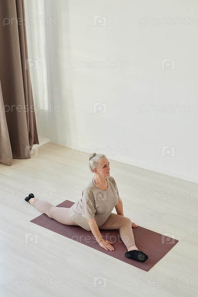 Активная пожилая женщина прилагает усилия, практикуя асану йоги