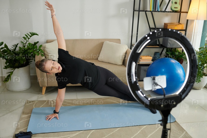 Фитнес-инструктор занимается боковой доской
