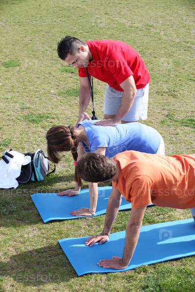 Персональный тренер помогает клиенту