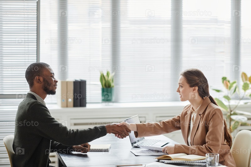 Бизнесмены пожали друг другу руки на собеседовании