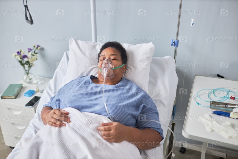 Чернокожая женщина-старший лежит на кровати в больничной комнате