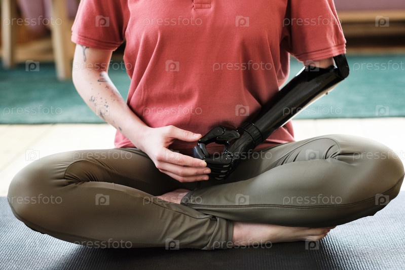 Женщина-инвалид, сидящая в положении лотоса