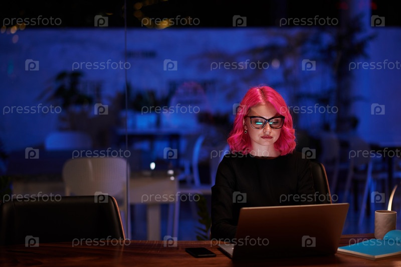 Женщина, работающая в темном кафе
