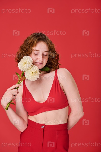 Красноволосая молодая девушка с цветами