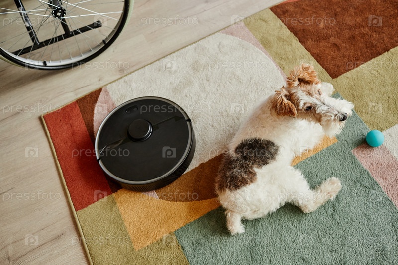 Собака с робототехническим пылесосом
