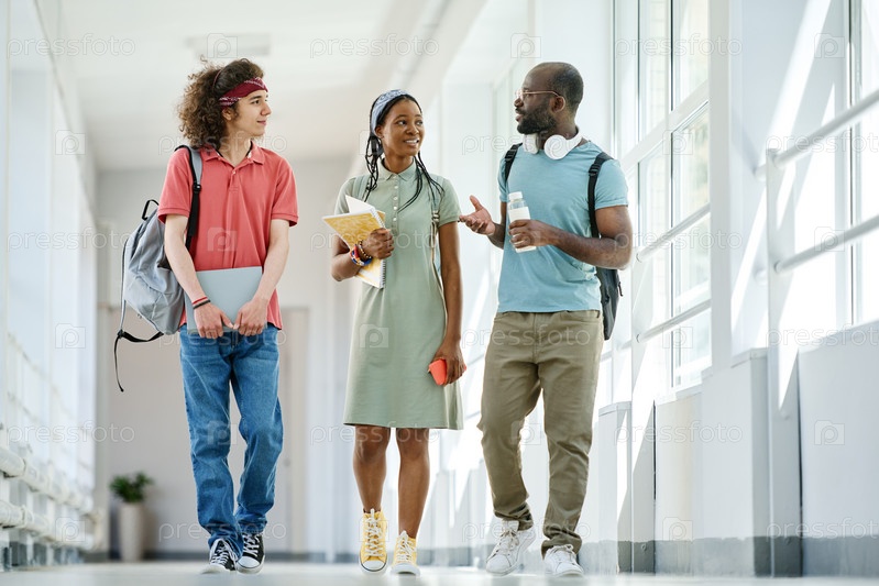 Друзья гуляют по коридору после уроков