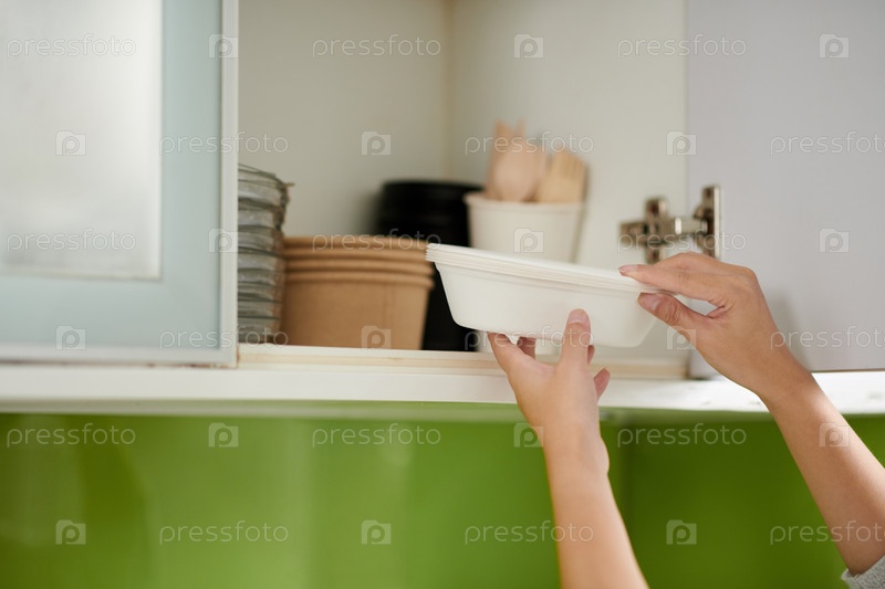 Женщина, принимающая одноразовые тарелки