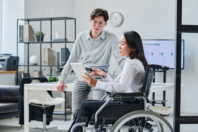 Коллеги обсуждают онлайн-отчет о планшетном компьютере