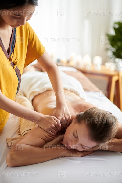 Женщина получает массаж плеч и спины