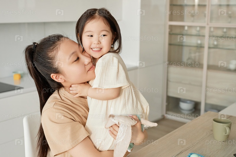 Мама обнимает свою маленькую дочь