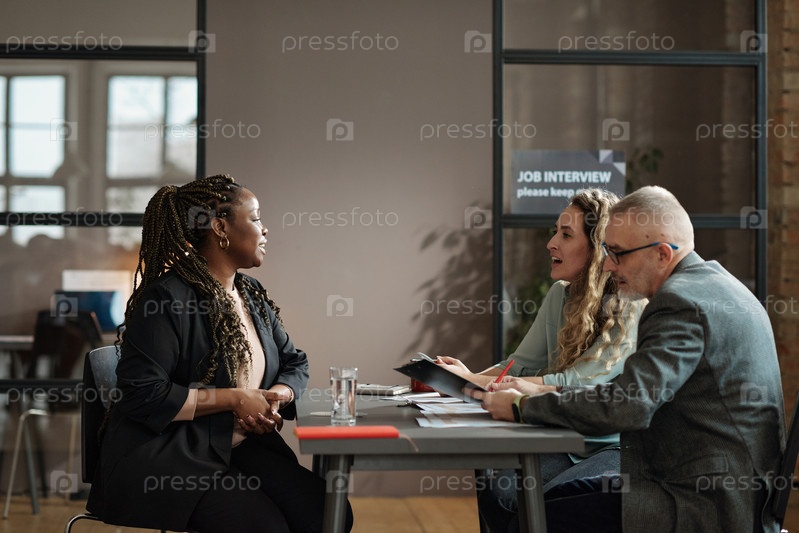 Женщина рассказывает о своей квалификации на собеседовании по работе