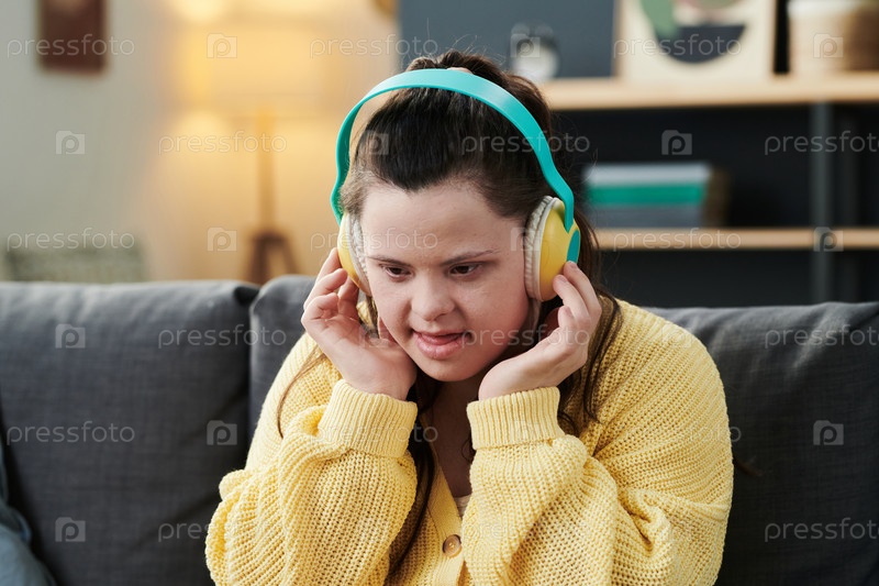 Молодая женщина с инвалидностью слушает музыку
