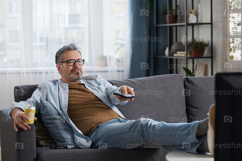 Человек наслаждается просмотром телевизора дома
