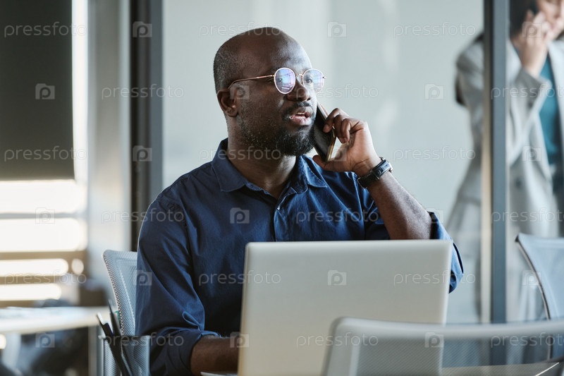 Уверенный афроамериканский сотрудник, делающий встречу с клиентом