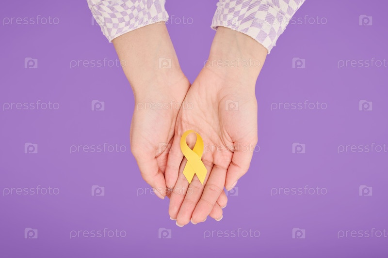 Женские руки, держащие желтую ленту