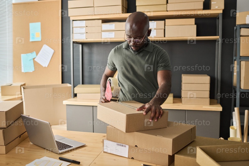 Работник, готовящий посылки к доставке