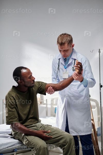 Врач осматривает руку солдата