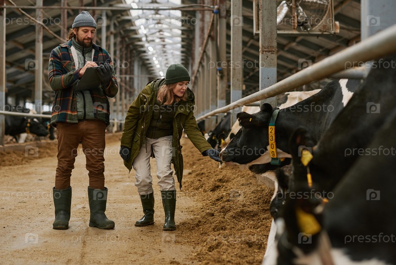 Пара фермеров, осматривающих состояние коров