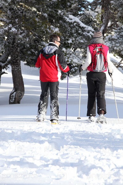 Пара катается на лыжах