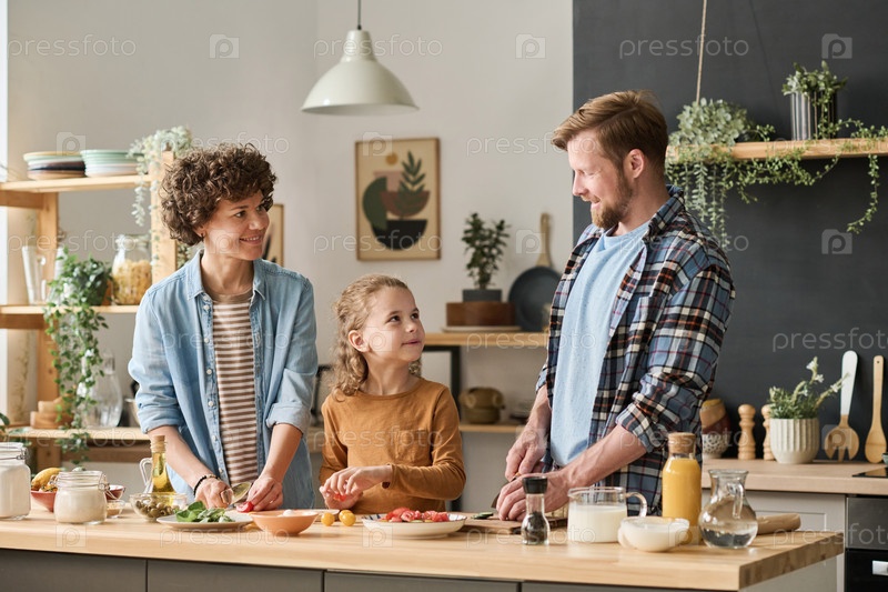 Семья с детьми готовит ужин