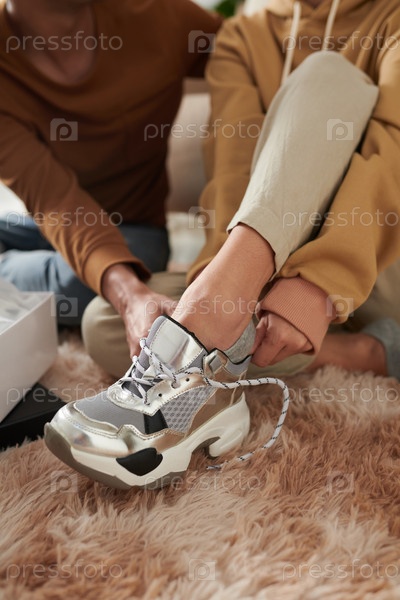 Женщина пробует новые кроссовки