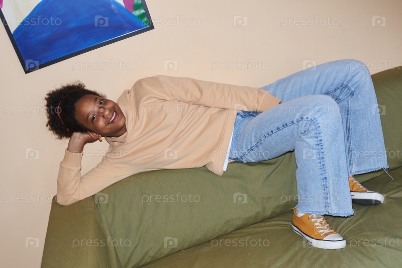 Черная девушка в повседневной одежде внутри с флэшем