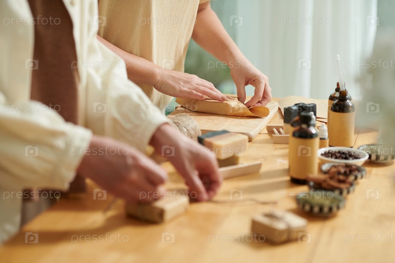 Женщины, упаковывающие мыльные батончики