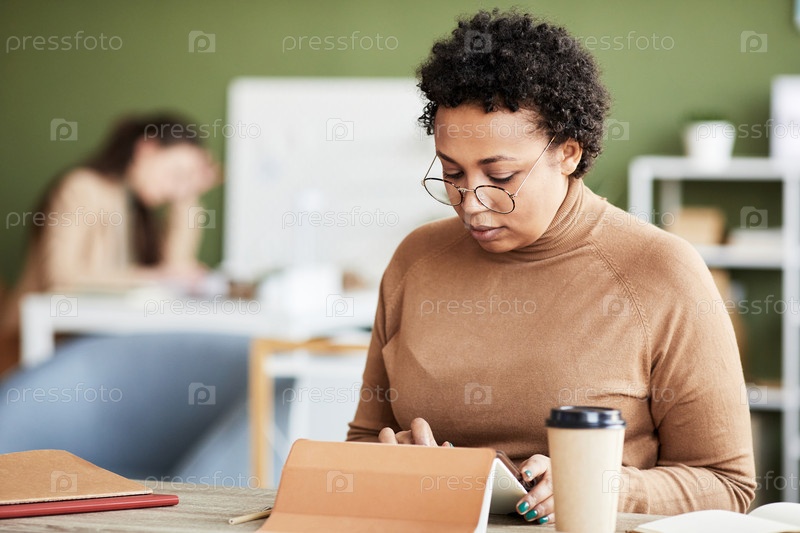 Женщина, работающая онлайн на планшетном компьютере