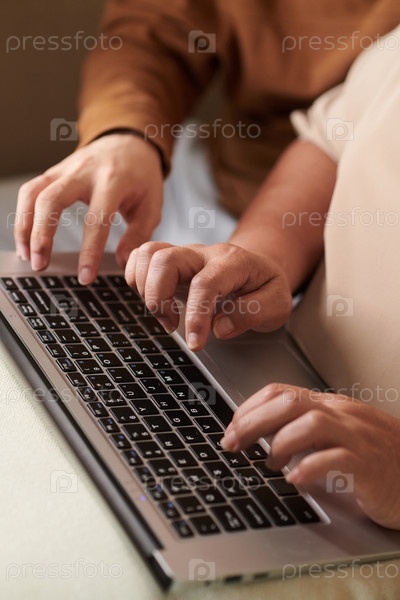 Старшая женщина, печатающая на клавиатуре