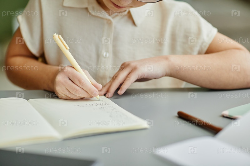 Девушка, выполняющая домашнее задание Closeup