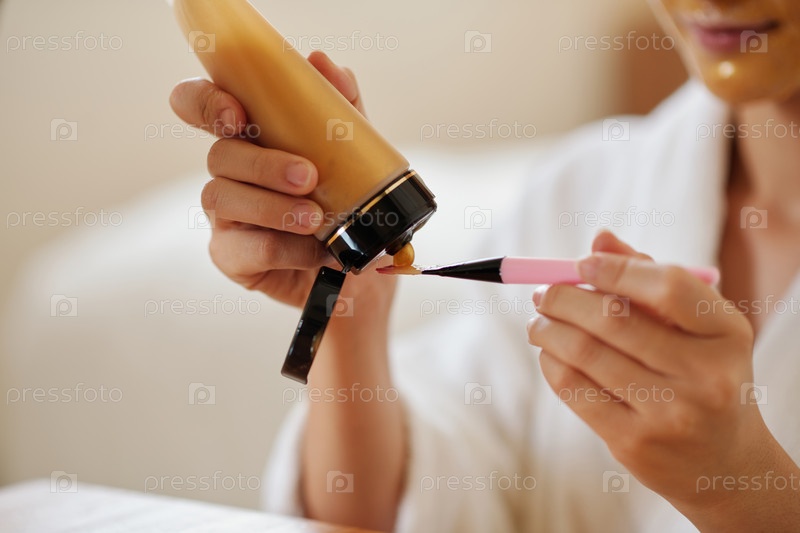 Женщина, применяющая осветляющую маску лица