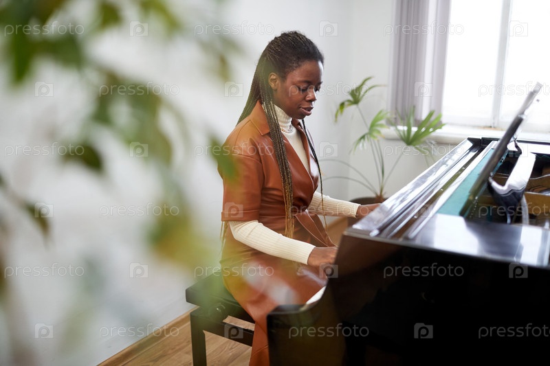 Женщина играет на пианино в классе