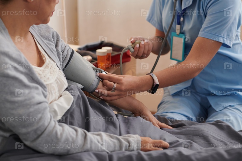 Медицинская медсестра измеряет кровяное давление