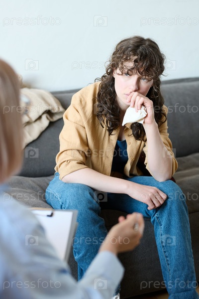 Молодая женщина слушает советы психотерапевта