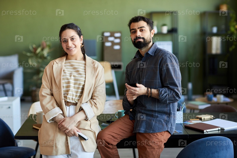 Два молодых успешных дизайнера или рабочие белых воротничков в умной повседневной одежде