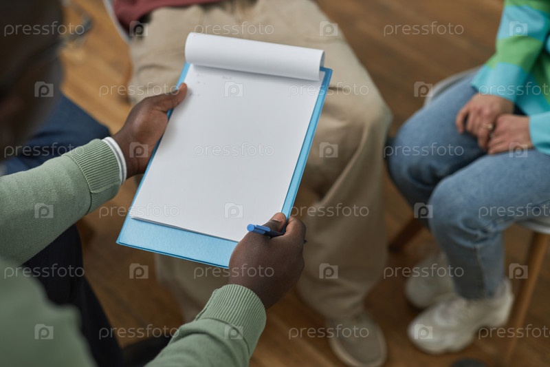 Вид сверху психолога-мужчины, держащего пустую карточку