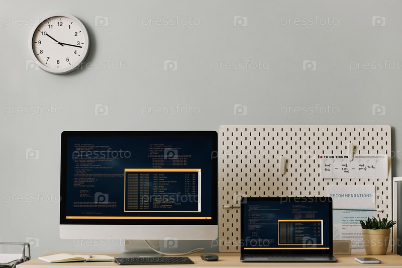 Настройка офисного рабочего места с компьютерным кодом на двух экранах