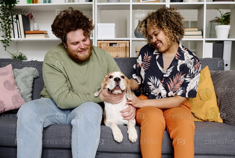 Счастливая пара, любящая своего питомца